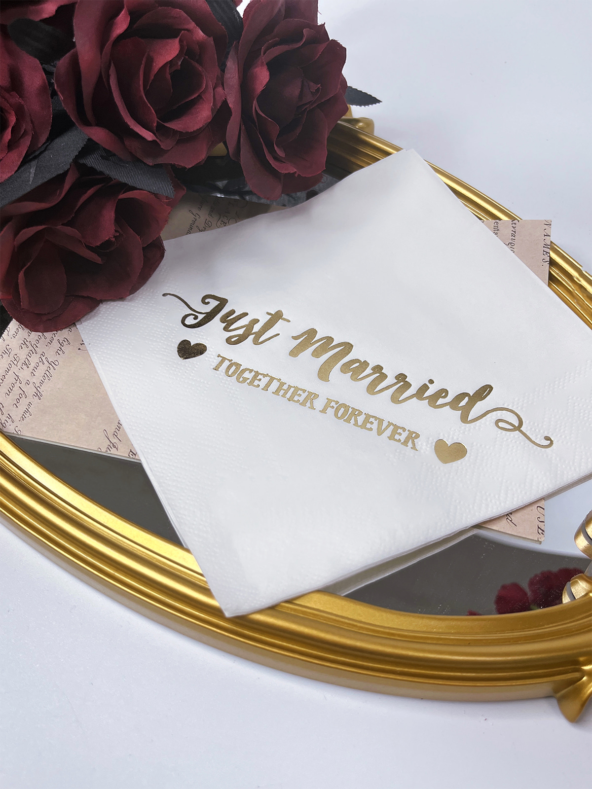 흰 종이에 금박으로 장식한 심플하면서도 우아한 디자인이 돋보이는 런천 냅킨으로, 식기의 매력을 더욱 돋보이게 하며 매력적인 파티 분위기를 연출합니다.