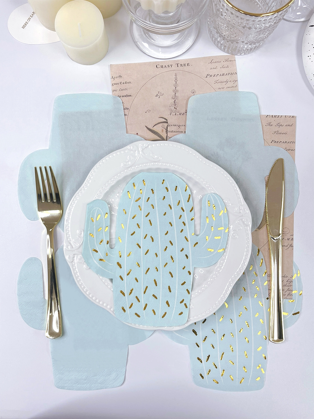 금박 라인이 돋보이는 다이컷 선인장 종이냅킨은 생기와 빛을 발산하여 가족모임은 물론 레스토랑에서도 활용하기 좋은 파티용품입니다.